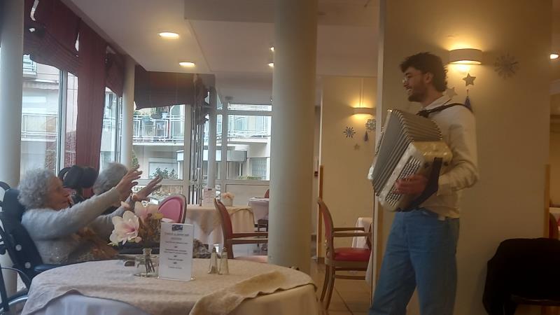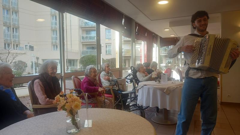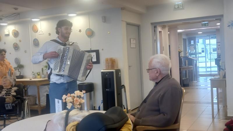 Un grand Merci à Adam, étudiant en médecine et accordéoniste, qui est venu ambiancer notre après-midi anniversaires du mois de Janvier avec son accordéon. Un bon moment qui a également permit de dire au revoir à Angèle qui a prit sa retraite.