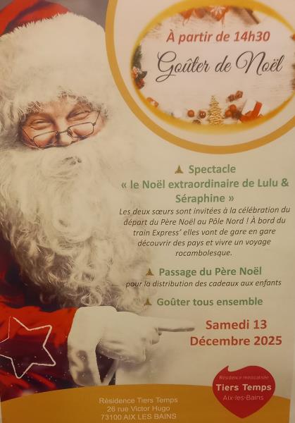 Se déroulera dès 14h30 le Samedi 13 Décembre le goûter de Noël de la résidence avec le spectacle "Le Noël extraordinaire de Lulu & Séraphine". Pour les familles qui souhaitant venir avec des enfants, n'hésitez pas à prévoir un petit cadeau que nous glisserons dans la hotte du Père Noël pour la distribution à 16h 😉