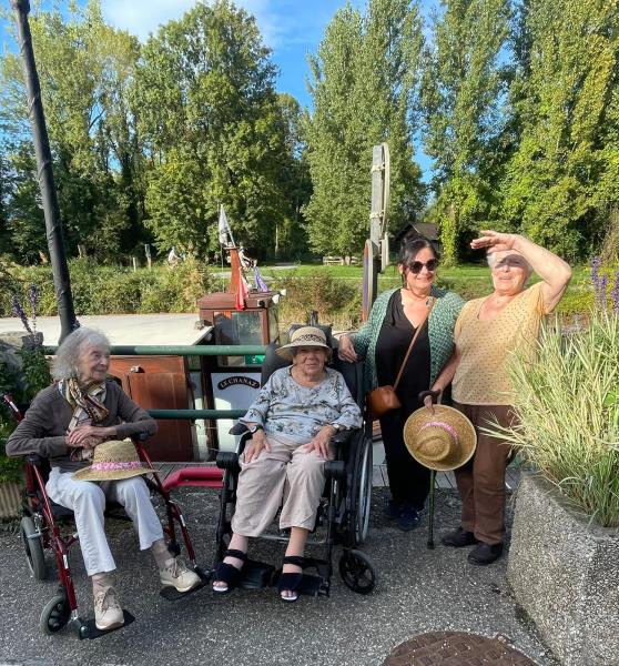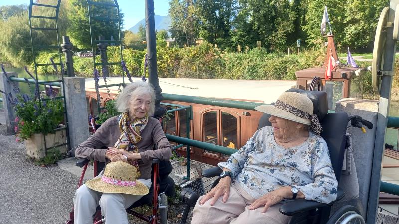 Direction Chanaz avec Alexia (aide-soignante) et Sabrina (animatrice) pour une balade dans les rues de cette Venise Savoyarde ; écoute des joueurs d'Orgue de Barbarie, rencontre avec les artisans (tisserand, potier) et pause goûter crêpe et rafraîchissement au bord du canal de Savière. Un magnifique moment pour tous.