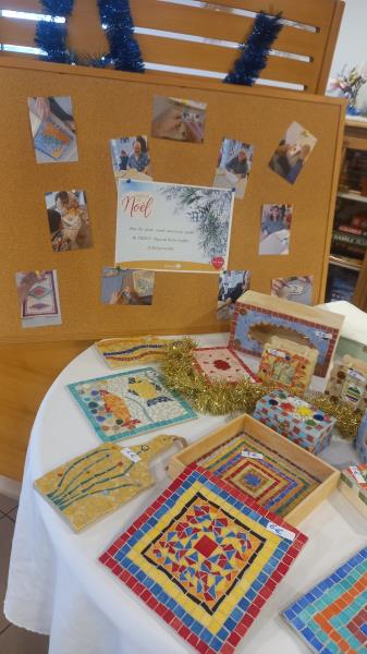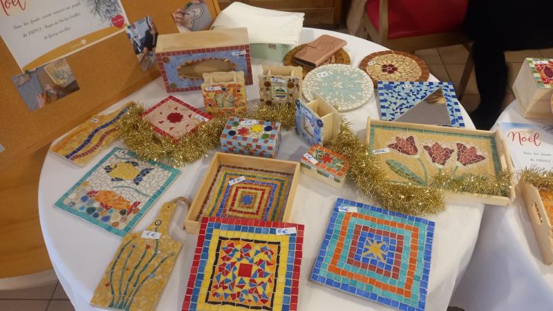 Grâce à notre projet mosaïque en partenariat avec l'APEI et plus précisément le foyer de vie " les érables" de Grésy sur Aix, nous avons réalisés de belles ventes dont tous les fonds seront reversés au Foyer. Des objets sont encore en vente à l'accueil de la résidence durant cette période de fêtes, donc n'hésitez pas !