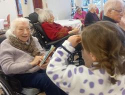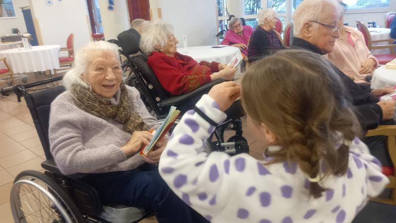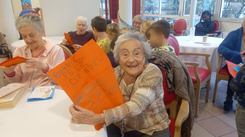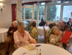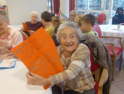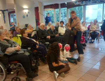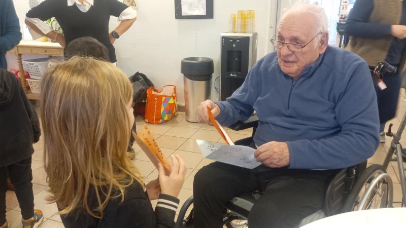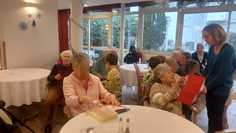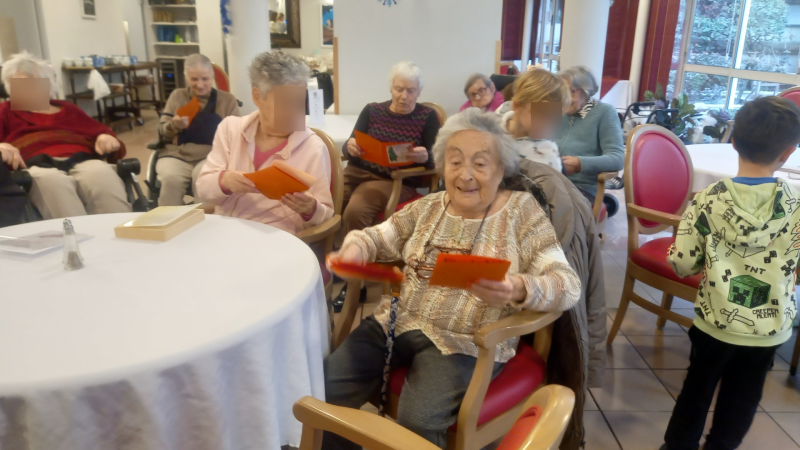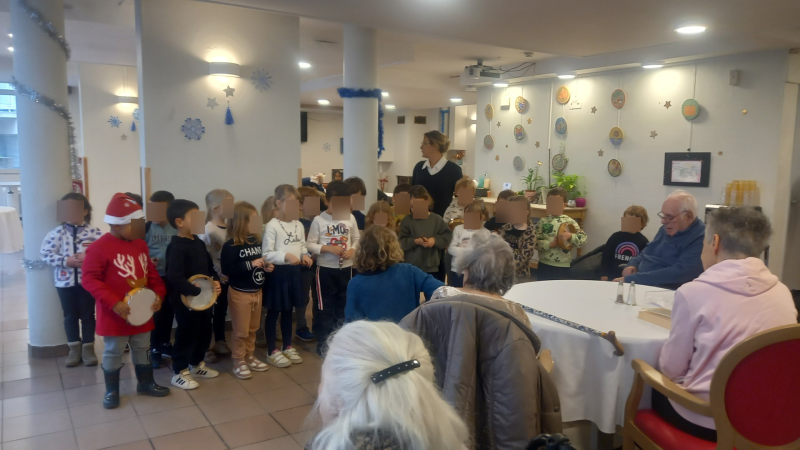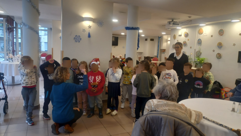 Belle rencontre intergénérationnelle avec les enfants de grande section de l'école maternelle du centre ; les enfants nous ont présentés les chants qu'ils avaient appris cette année juste avant un échange de "petits cadeaux" et la prise du goûter tous ensemble...l'après-midi s'est terminée avec des étoiles dans les yeux pour tout le monde !