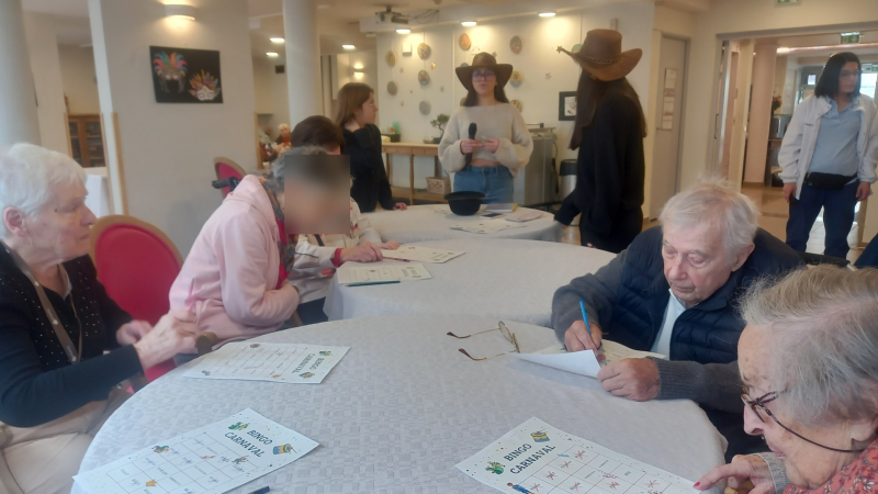 Pour clôturer nos 2 belles journées de Carnaval, les arrières petites filles de Mme Prat sont venues proposer un "bingo carnaval" avec des petites gourmandises à gagner ! Puis, elles nous ont présenté une chorégraphie avant de déguster les bugnes tous ensemble. Un grand merci à elles pour leur investissement et leur bienveillance.
